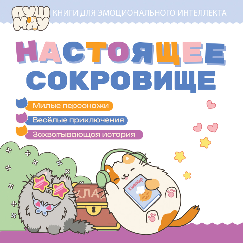 ИСТОРИЯ О НАСТОЯЩЕЙ ДРУЖБЕ, КОТОРАЯ НЕ ОСТАВИТ РАВНОДУШНЫМИ НИ ДЕТЕЙ, НИ ВЗРОСЛЫХ! С очаровательным котиком ПушМяу никогда не бывает скучно! На этот раз он нашёл настоящий клад, но открыть сундук самому у него не получается. Конечно, если попросить друзей о помощи, они точно не откажутся, но ведь тогда придётся поделиться сокровищами с ними, а ПушМяу так хочется, чтобы всё досталось ему одному! Как же поступит наш милый герой? Эта весёлая и добрая история покажет малышам, как это на самом деле приятно — делиться с теми, кого любишь!