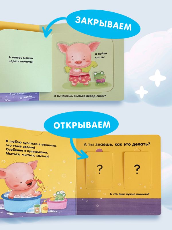 Серия книг о полезных привычках с подвижными деталями и интерактивными элементами для малышей!