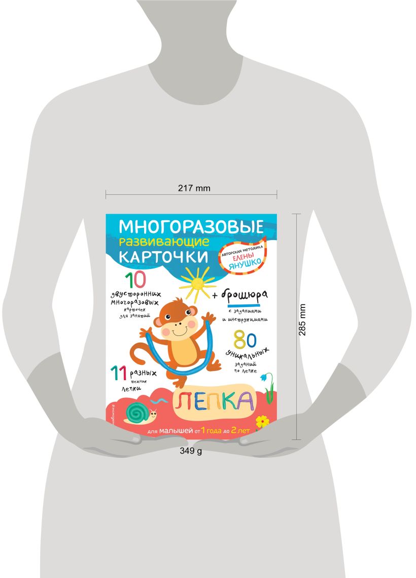На каждой стороне многоразовой каточки вы найдете яркую картинку–основу для выполнения задания, и четыре разноплановые задания в разных техниках лепки. 80 игровых заданий рассчитаны на целый год занятий! А в отдельной брошюре вы найдете подробную и наглядную инструкцию по проведению занятий с образцами выполненных заданий, вариантами обыгрывания и комментария взрослого.