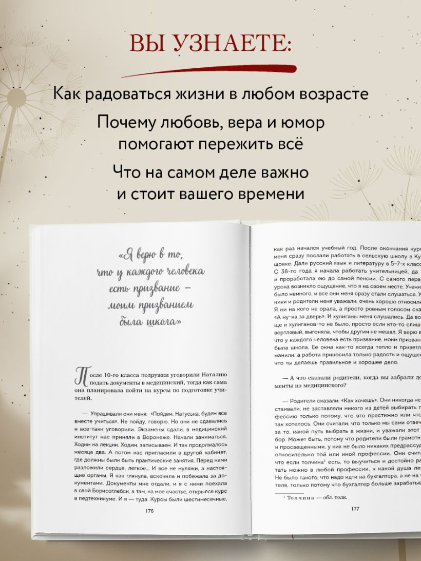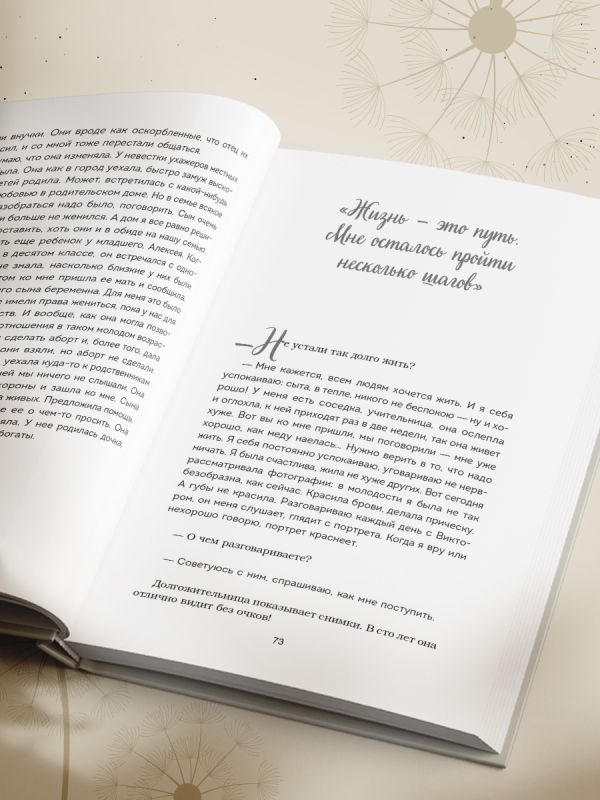 «100 лет жизни» — это не руководство по здоровому образу жизни и не сборник секретов долголетия. Это честные и трогательные истории о том, как прожить жизнь, наполненную смыслом, несмотря на все трудности и испытания. Это возможность оглянуться на свой пройденный путь и понять, что у нас есть только один шанс на счастье и время летит быстрее, чем мы думаем.