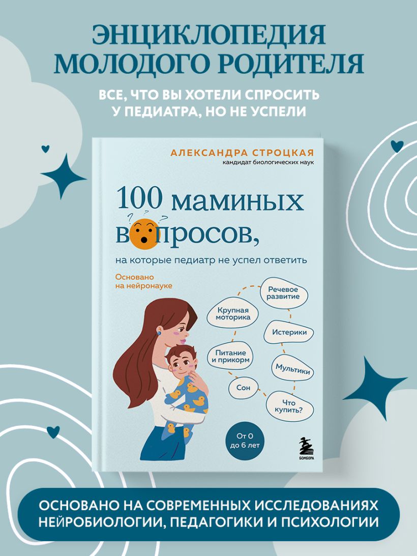 Александра Строцкая, мама двоих детей, кандидат биологических наук и создатель платформы «Нейромама», делится авторской методикой раннего развития ребенка от 0 до 6 лет, основанной на данных нейробиологии, педагогики и психологии. В этой книге собраны 100 самых частых «маминых» вопросов, которые вы хотели, но не успели задать педиатру.