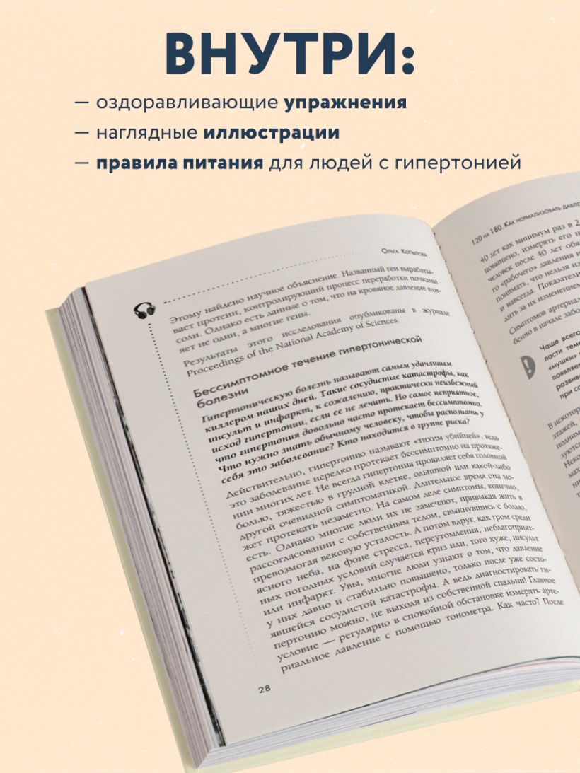 Вот что сказал о ней доктор медицинских наук, профессор, заслуженный врач Российской Федерации Анатолий Болеславович Ситель: «Можно ли вылечить гипертонию лекарствами? Увы, нет. С помощью лекарств можно снизить артериальное давление, но если перестать пить таблетки, оно снова повысится. А вот здоровый образ жизни способен творить чудеса! В книге Ольги Копыловой рассказывается о том, как нормализовать артериальное давление с помощью правильного питания, методов релаксации, специально подобранных физических упражнений и мануальной терапии. Книга написана легким и доступным языком и затрагивает все наиболее важные моменты в профилактике и лечении гипертонической болезни. Воспользовавшись приведенными в книге рекомендациями по естественному оздоровлению, можно одержать победу над гипертонией, при этом не отказываясь от медикаментозного лечения и наблюдения врача».