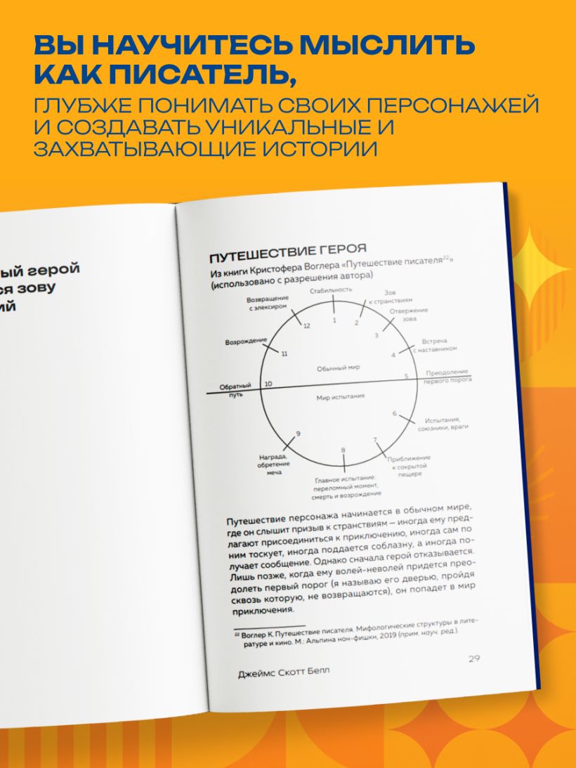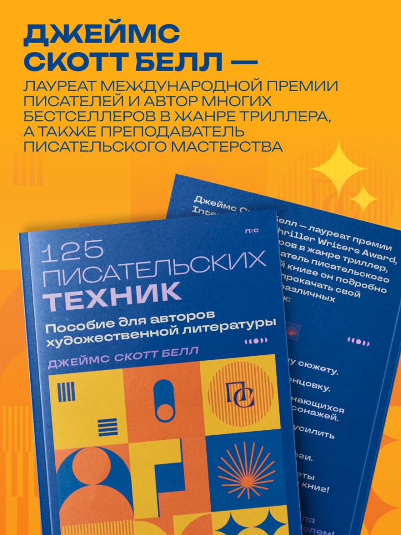Джеймс Скотт Белл — лауреат Международной премии писателей и автор многих бестселлеров в жанре триллера, а также преподаватель писательского мастерства. В своей книге автор подробно раскрывает, как прокачать свой писательский навык, раскрыть талант с помощью разных писательских техник.
