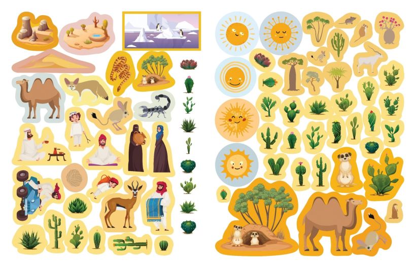 С помощью 150 ярких и красочных наклеек дети смогут оживить пустынный мир, создавая уникальные и забавные сцены.