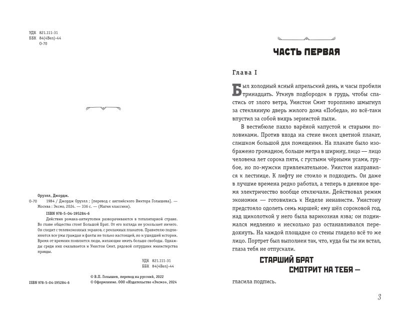 «Идеальная антиутопия» Джорджа Оруэлла «1984» — это классика социальной фантастики, до сих пор властно влияющая на умы. Впервые выйдя в свет 75 лет назад, книга буквально взорвала мир и стала культовой для нескольких поколений. Миллионы читателей узнают друг друга по вошедшим в привычную лексику словам: «новояз», «мыслепреступление», «Большой Брат», «Министерство правды»… Каждый из нас находит в книге собственные смыслы и проводит собственные параллели.