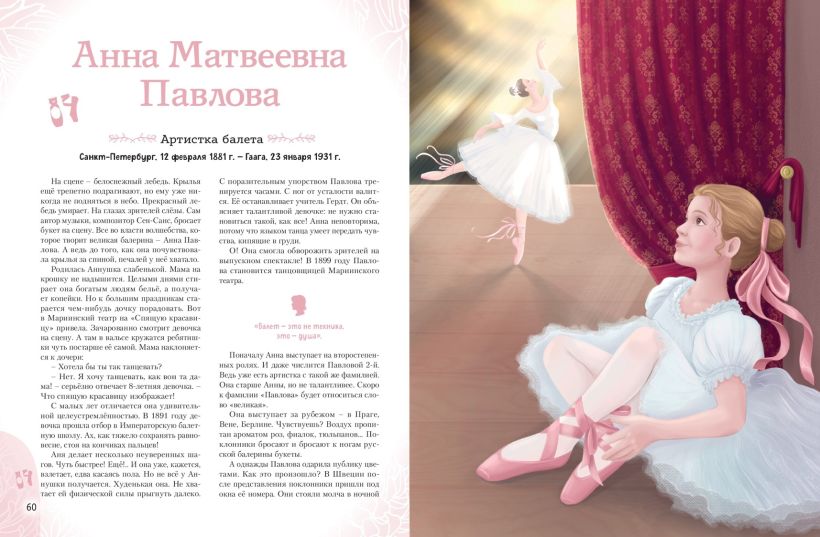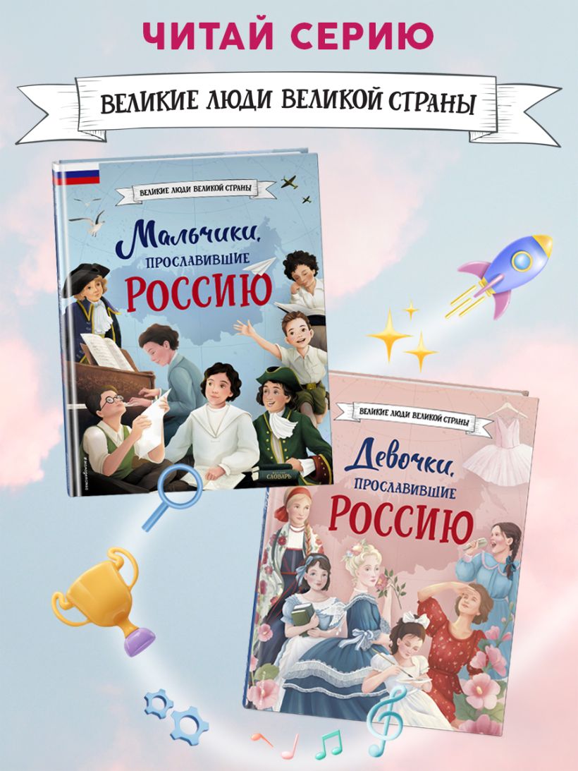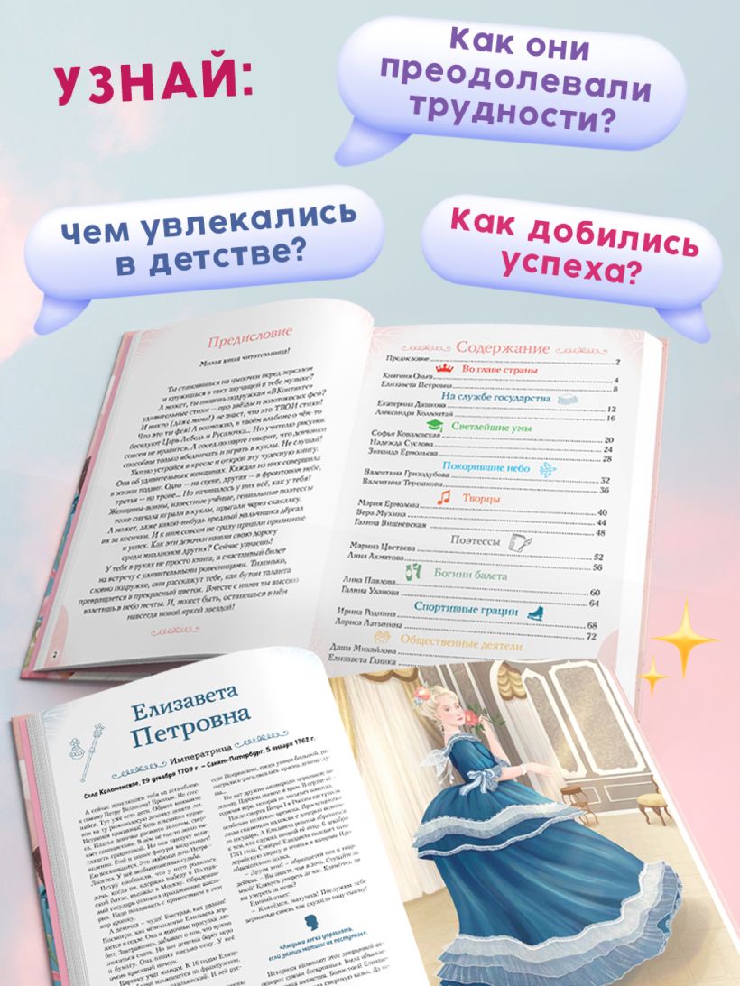 Тогда открывайте эту книгу! В каждом из 20 биографических рассказов, адаптированных для детей 7—10 лет, — невероятный образец силы воли и стойкости характера, мотивирующий девочек на собственные свершения. Их сопровождают красочные полосные иллюстрации и занимательные факты, чтобы знакомиться с выдающимися соотечественниками было наглядно и увлекательно. А ещё это неповторимый подарок для всех, кто гордится историей и культурой своего Отечества!