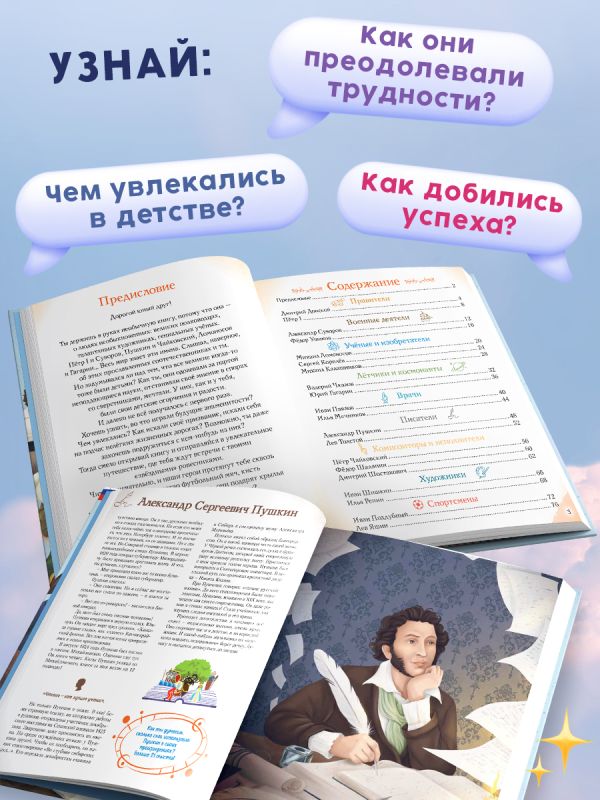 Что особенно ценно: книга не просто рассказывает о прошлом, а вдохновляет! Каждая история — пример того, как упорство, любознательность и вера в себя помогают добиваться невероятного. Яркие иллюстрации и интересные факты делают чтение ещё увлекательнее, а адаптированный для детей язык позволяет легко воспринимать текст.