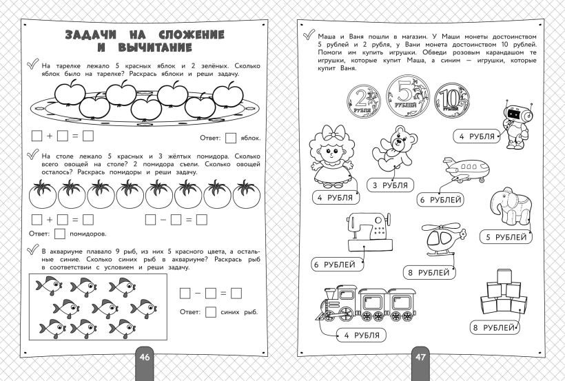 Книга, соответствующая ФГОС, большого формата со стильными черно-белыми иллюстрациями, напечатанная на белой бумаге, представляет собой одновременно рабочую тетрадь и обучающее пособие для подготовки ребенка школе. 200 увлекательных и понятных упражнений помогут детям запомнить цифры и научиться складывать и вычитать, сравнивать и обобщать. Эффективная методика проверена временем и гарантирует высокий результат. А оптимальное сочетание цены и качества порадует родителей и педагогов.