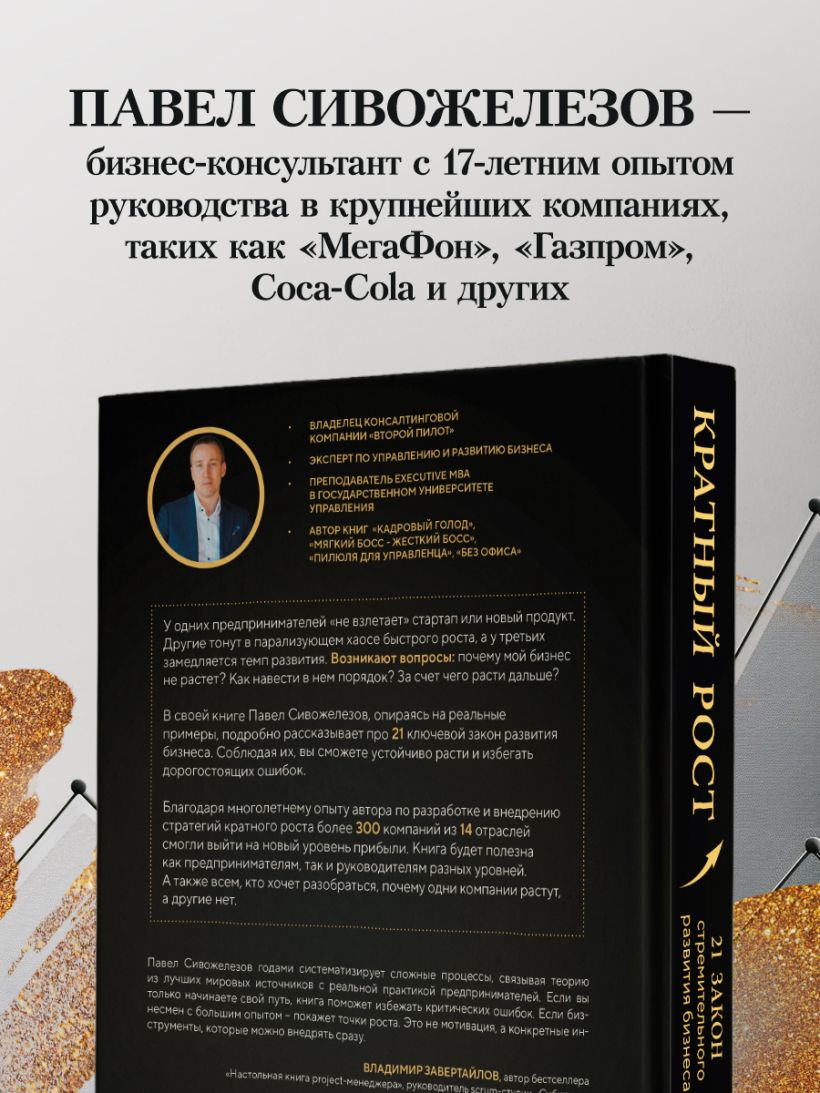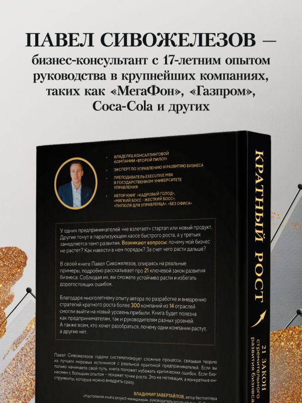 «Павел Сивожелезов годами систематизирует сложные процессы, связывая теорию из лучших мировых источников с реальной практикой предпринимателей. Если вы только начинаете свой путь — книга поможет избежать критических ошибок. Если бизнесмен с большим опытом — покажет точки роста. Это не мотивация, а конкретные инструменты, которые можно внедрять сразу». — Владимир Завертайлов, автор бестселлера «Настольная книга project-менеджера», руководитель scrum-студии «Сибирикс»
