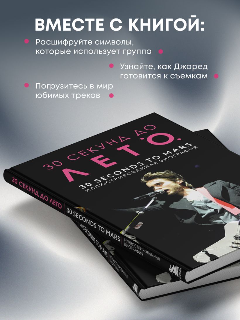 «Человечество находится в 30 секундах от Марса» — так звучит кредо группы Thirty Seconds to Mars. История этой уникальной и культовой группы — по-настоящему захватывающее приключение. Эта книга погрузит вас в атмосферу клипов The Kill, From Yesterday и A Beautiful Lie и поможет вновь пережить незабываемые эмоции от любимых треков. Вас ждет увлекательный рассказ о культовых альбомах «Марсов»: Love, Lust, Faith and Dreams, It’s The End of the World But It’s a Beautiful Day и других пластинок.