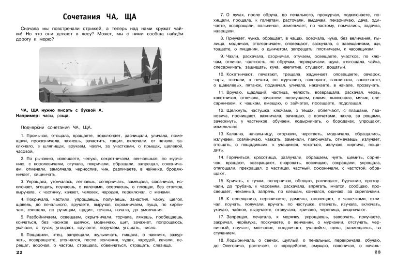 Пособие по русскому языку от издательства «Эксмо» подготовлено в соответствии с требованиями ФГОС для начальной школы и может быть использовано с любым из действующих учебников для 1 класса. Удобный тренажер с интересным современным макетом поможет ребёнку улучшить грамотность, восполнить пробелы, углубить и систематизировать знания. Занимаясь, школьник не только отработает основные темы школьной программы: правописание ЖИ-ШИ, ЧА-ЩА, ЧУ-ЩУ, ЧК, ЧН, НЧ, НЩ, парных согласных в конце слова, имен собственных, предлогов и др., но и научится работать по плану, то есть выполнять определенный алгоритм действий, который поможет ему осознанно применять правила. Когда навык грамотного письма будет доведен до автоматизма, результат в виде твердых знаний и отличных оценок не заставит себя ждать.