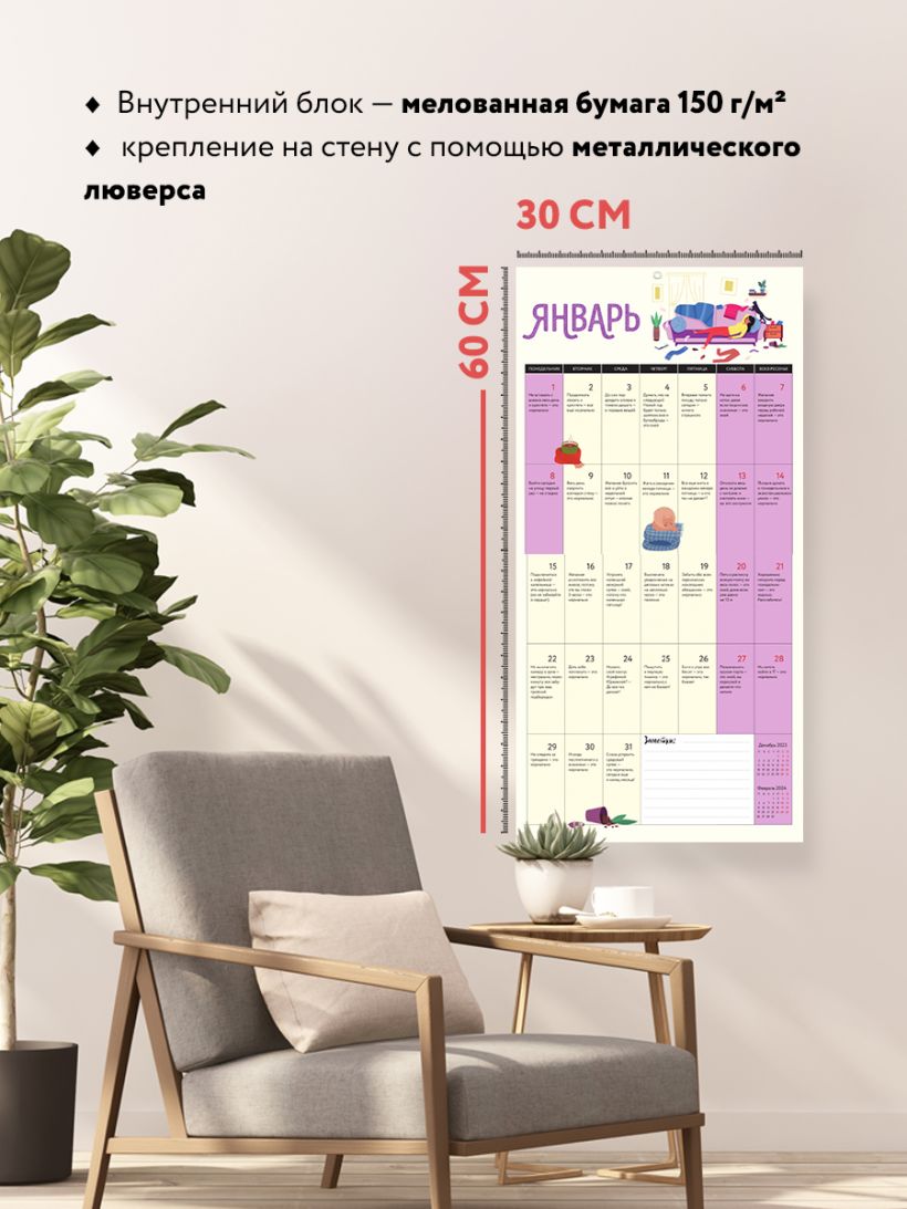 Наши настенные календари отличаются высоким качеством исполнения! Тщательно подобранные иллюстрации, напечатанные на глянцевой бумаге высочайшего качества, станут настоящим украшением дома, а в календарной сетке найдется место для ваших планов: большие клетки позволят делать записи и организовать свой год! В календаре также отмечены все государственные праздники.