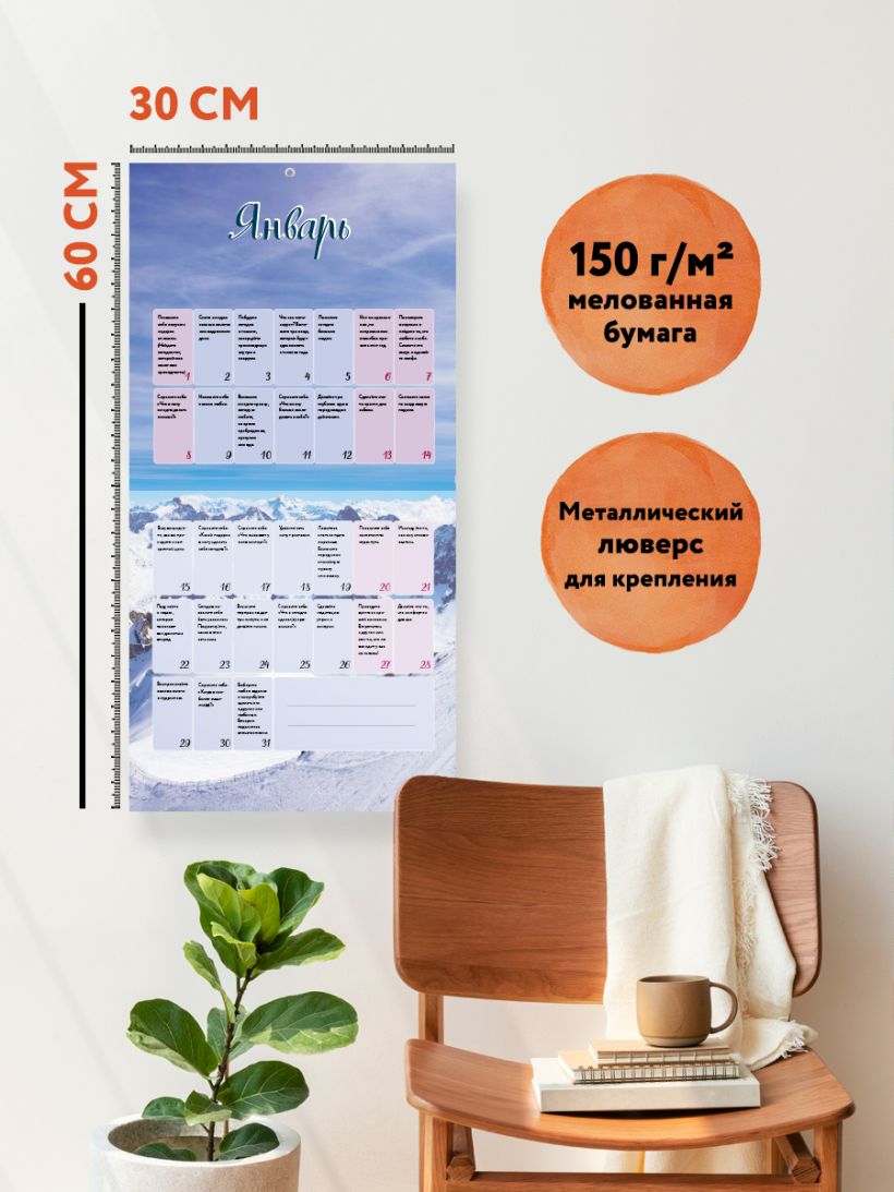 Наши настенные календари отличаются высоким качеством исполнения! Тщательно подобранные иллюстрации, напечатанные на глянцевой бумаге высочайшего качества, станут настоящим украшением дома, а в календарной сетке найдется место для ваших планов: большие клетки позволят делать записи и организовать свой год! В календаре также отмечены все государственные праздники.