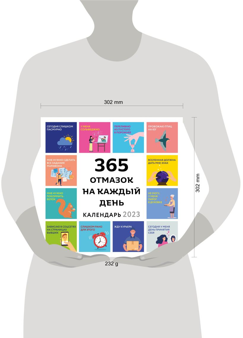 Сколько раз вам предлагали делать то, что вам не хочется? Или идти куда-то, где вам будет скучно? Чтобы лишний раз вам не приходилось напрягать мозг и сочинять отмазки, мы сделали это за вас! Каждый день — новая отмазка, которая подойдет для самых разных случаев. Не вписывайтесь в сомнительные мероприятия, отмазывайтесь красиво и иронично вместе с нашим календарем. Также такой календарь станет прекрасным подарком для друзей, которые игнорируют встречи с вами и нелепо придумывают оправдания. Добавьте креатива в их жизнь!