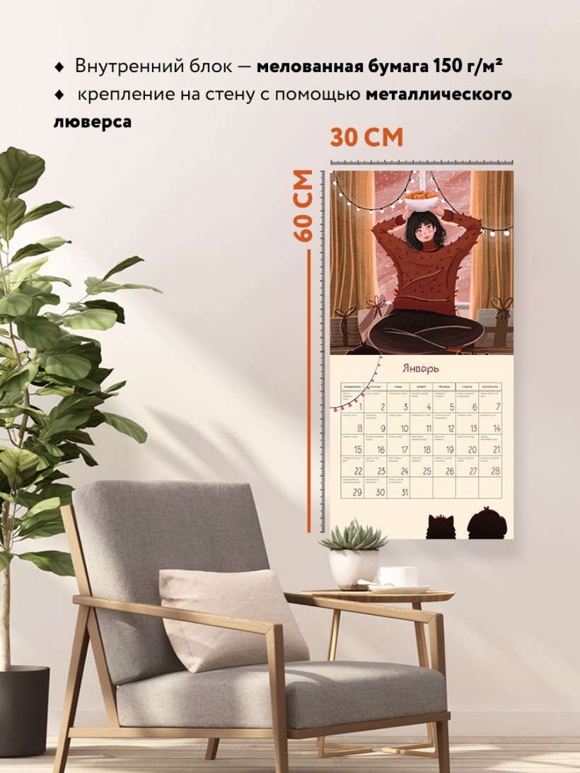 - Тип календаря — настенный перекидной.