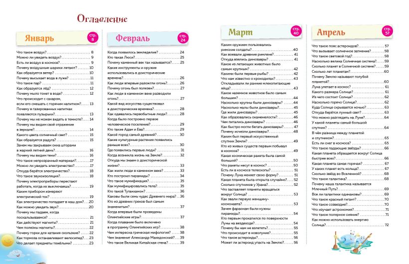Энциклопедия на все 365 дней в году в самом популярном формате вопросов и ответов, разработанная специально для ребят 10—12 лет! В одной книге — целых 365 ответов на все вопросы школьника обо всём на свете: тайны космоса, история древних цивилизаций, удивительные способности тела человека, уникальные погодные явления, секреты динозавров и животных. Полезная информация изложена просто и доступно, поэтому чтение увлечёт ребёнка и легко наполнит новыми знаниями и интересом к изучению мира вокруг. А яркое оформление превратит эту энциклопедию в идеальную настольную книгу любознательного школьника.
