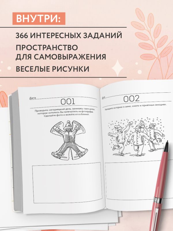 В блокноте собрано 366 заданий на каждый день. Ежедневно выполняйте одно задание в любое удобное для вас время. Чем больше заданий вы выполните, тем насыщеннее станет ваша жизнь.