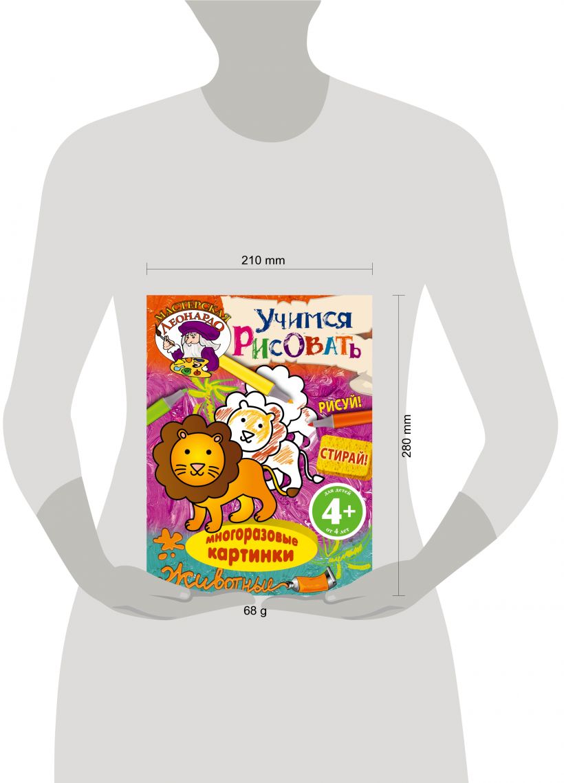 Эта книга призвана разбудить фантазию и воображение ребёнка. Даже если он не умеет рисовать тигров, львов, слонов и других животных, эти простые уроки научат его уверенно владеть фломастером. А если малыш ошибётся — всё можно стереть влажной губкой и попробовать снова.