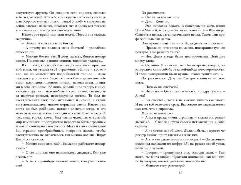 Автор произведения погружает в мир возможного будущего, где главную опасность для горожан, как ни странно, представляют книги. Запрещённую литературу сжигают самые настоящие пожарники, и Гай Монтэг один из них. Однажды он задумывается, правильное ли их дело и что станет, если пойти против системы?..