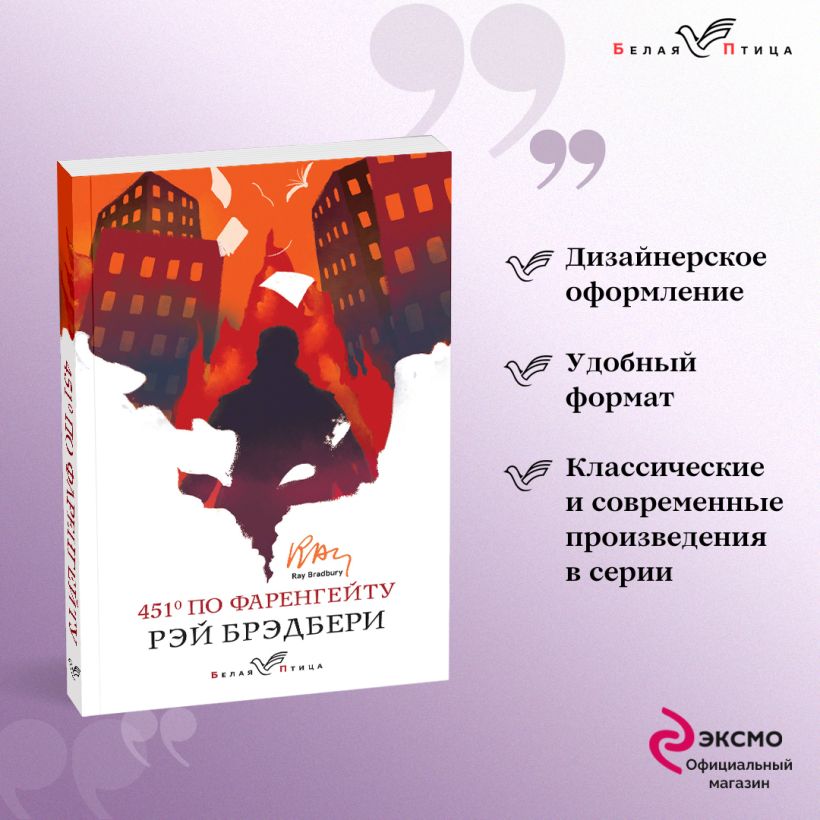 451° по Фаренгейту — температура, при которой воспламеняется и горит бумага. Философская антиутопия Брэдбери рисует беспросветную картину развития постиндустриального общества: это мир будущего, в котором все письменные издания безжалостно уничтожаются специальным отрядом пожарных, а хранение книг преследуется по закону, интерактивное телевидение успешно служит всеобщему оболваниванию, карательная психиатрия решительно разбирается с редкими инакомыслящими, а на охоту за неисправимыми диссидентами выходит электрический пес…