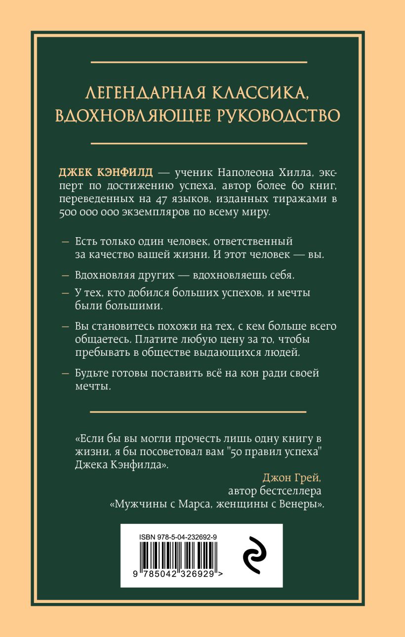 «Если бы вы могли прочесть лишь одну книгу в жизни, я бы посоветовал вам "Правила успеха" Джека Кэнфилда». — Джон Грей, автор бестселлера «Мужчины с Марса, женщины с Венеры»