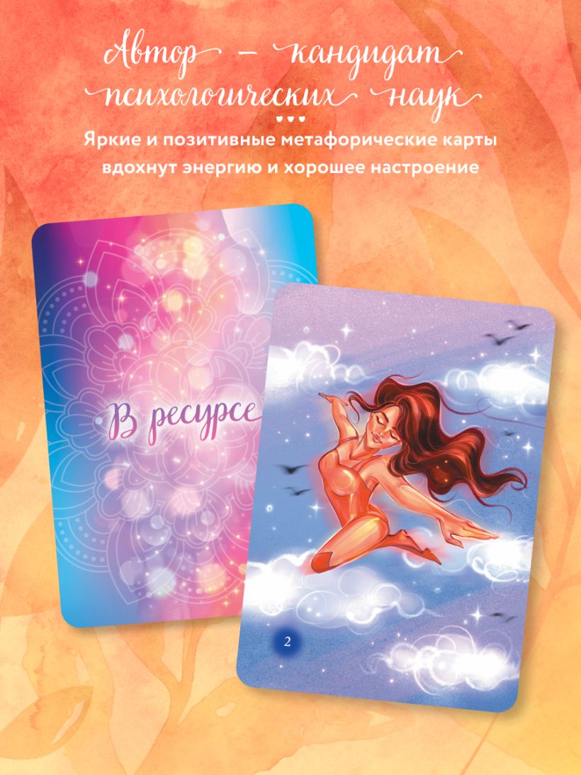 Колода позволит изменить свои мысли и чувства. Яркие женские образы, словно брызги шампанского, подарят ощущения праздника и хорошего настроения. В колоде 50 метафорических карт и брошюра-инструкция, в которой вы найдете пять техник по работе со своим ресурсным состоянием.
