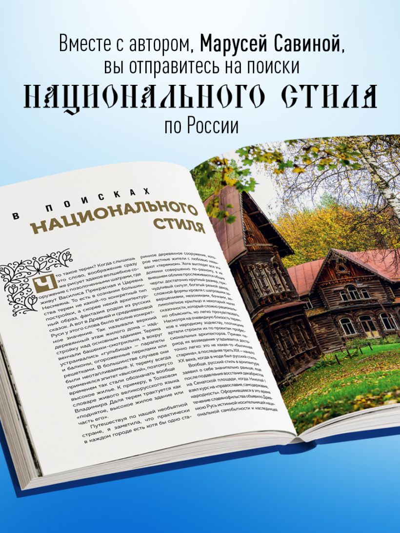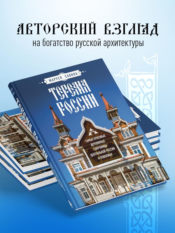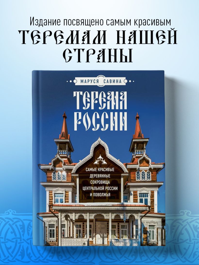 Издание «Терема России. Самые красивые деревянные сокровища Центральной России и Поволжья» посвящено невероятным сокровищам Центральной и Европейской части России. Вместе с автором, Марусей Савиной — блогером, фотографом, исследователем и хранителем русской архитектуры, вы отправитесь на поиски национального стиля в такие области, как Костромская, Владимирская, Нижегородская, Ярославская, Тверская, Самарская, Республики Марий Эл, Татарстан, Мордовия, а также посетите терема Москвы и Подмосковья.
