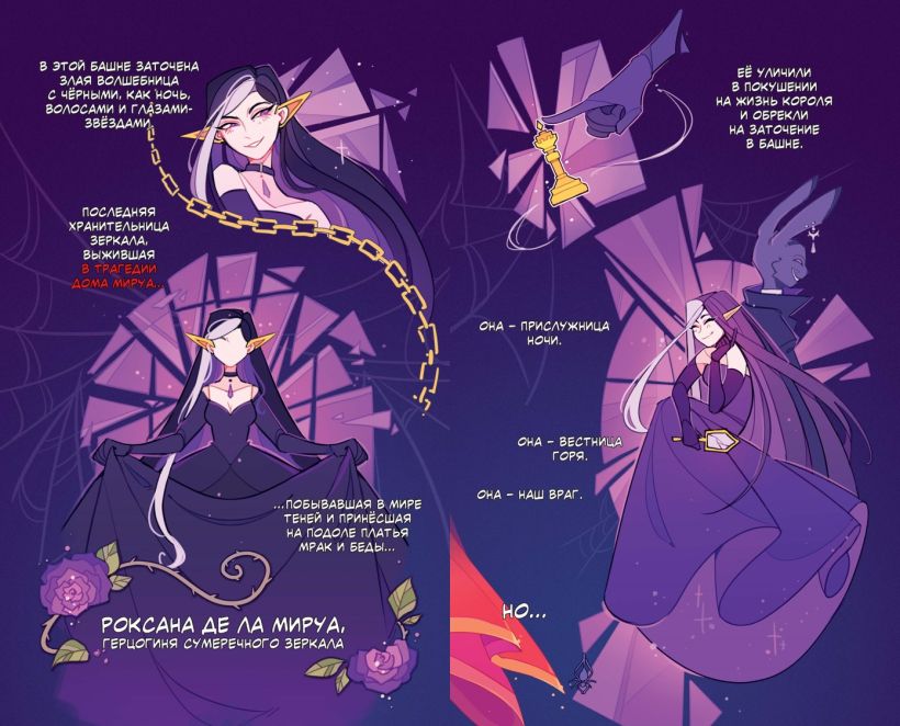Например, Роксана уже умело фехтует, играет в шахматы и шпионит. Пенни и Рокси такие разные, но имеет ли это значение в мире, где им судьбой предначертано быть злодейками?