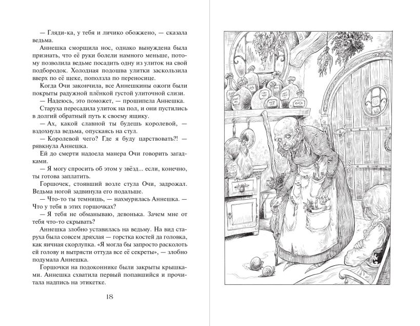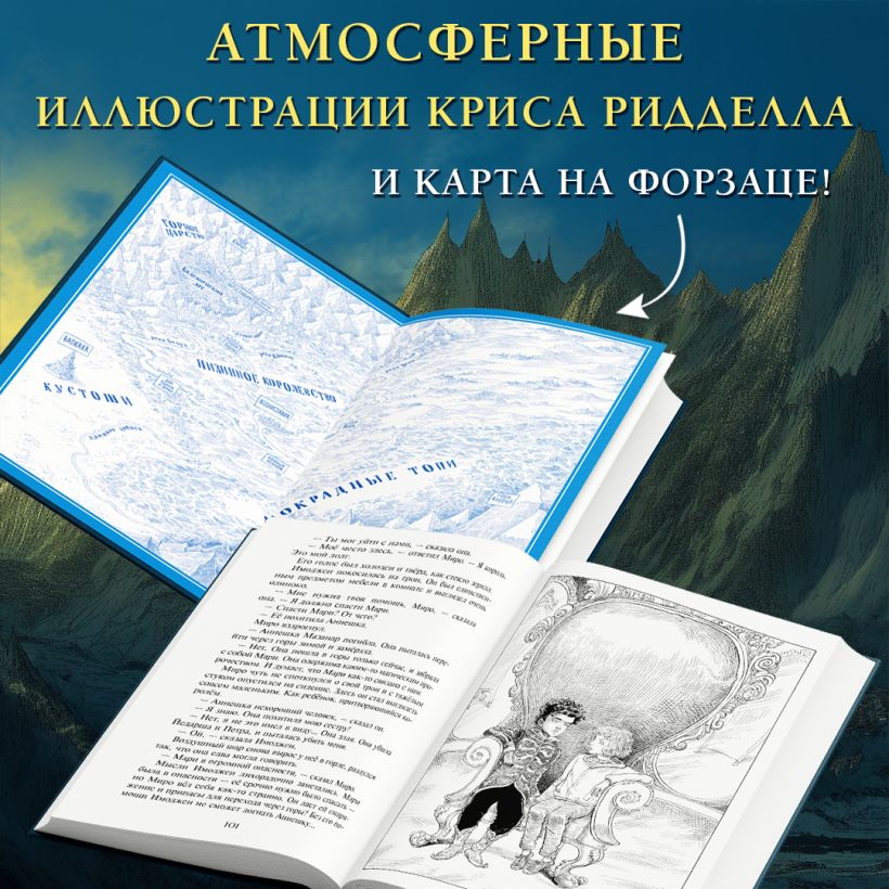 Атмосферные чёрно-белые иллюстрации от известного художника Криса Риддела. Книга понравится поклонникам «Хроник Нарнии», а также серий «Зильбер» и «Сага о семье Игиби».