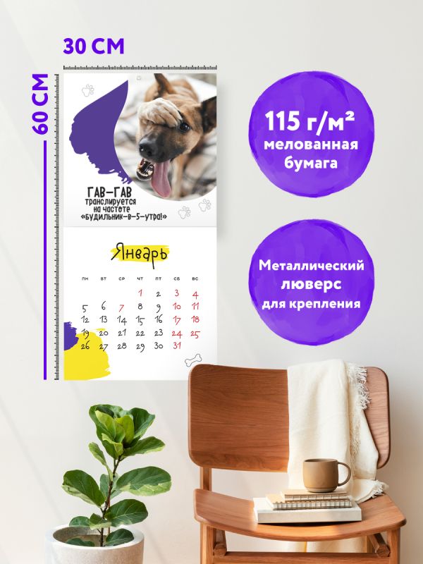 Наши настенные календари отличаются высоким качеством исполнения! Тщательно подобранные иллюстрации, напечатанные на матовой бумаге высочайшего качества, станут настоящим украшением дома, а в календарной сетке найдется место для ваших планов: большие клетки позволят делать записи и организовать свой год! В календаре также отмечены все государственные праздники.