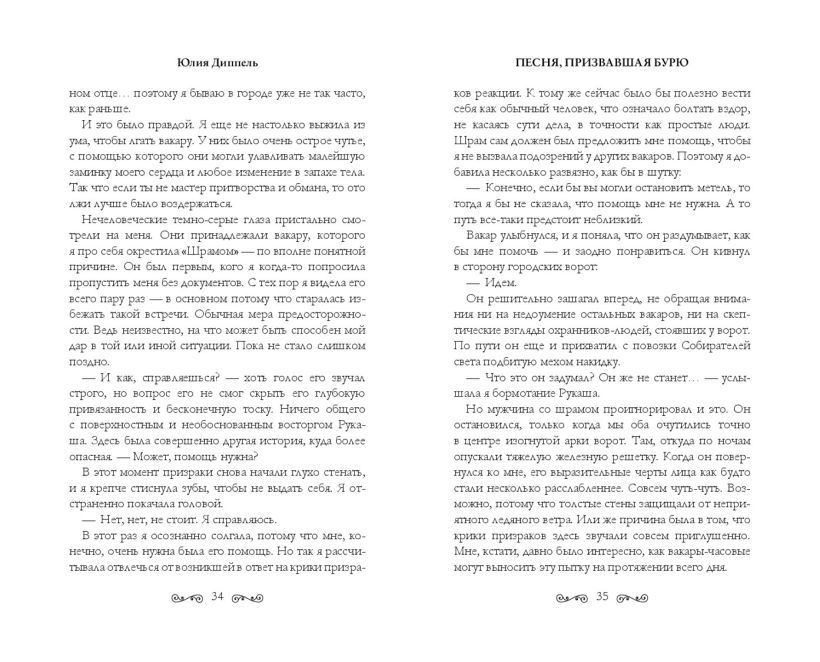 В «Песне, призвавшей бурю» немецкая писательница открывает врата в кинематографично реальный фэнтезийный мир с магическими созданиями, мрачными интригами, трепетной историей любви и ненависти девушки-кидхи Синты и вакара Арезандера. А еще здесь совершено кровавое убийство, плата за раскрытие которого для героев окажется непомерной…Кидхи — магические создания, чья кровь смешана с одемом. Это особая энергия — подарок богов — дарует кидхам необычную внешность и магические способности. В мире Диппель есть светлые и темные кидхи. Темные сильнее в тени ночи, а светлые в свете дня. К ним относятся и ониды, грациозные создания, способные околдовать странника песней, в строках которой заключены желания. Арезандер подозревает, что Синта — одна из них.