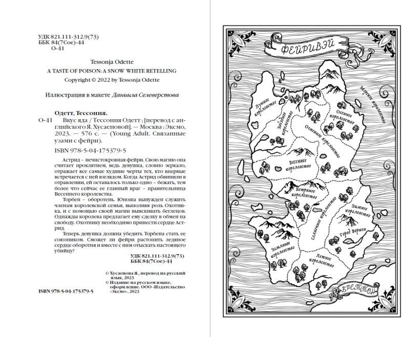 На форзацах будут иллюстрации персонажей и цитаты. А также внутри макета вас ожидает приятный сюрприз в виде карты вселенной Фейривэй.