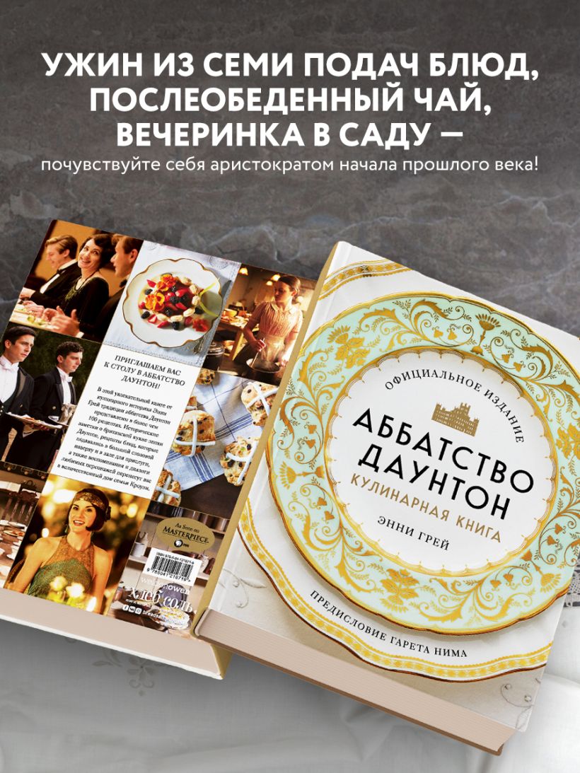 В этой увлекательной книге от кулинарного историка Энни Грей традиции «Аббатства Даунтон» представлены в более чем 100 рецептах. Это рецепты блюд, которые демонстрируют обычаи семьи Кроули, а также типичны для британской аристократии и прислуги в начале XX века. Книга состоит из двух частей: роскошные блюда наверху и простые приемы пищи внизу. Некоторые из рецептов адаптированы для современности, а некоторые оставлены в первоначальном виде, в котором они были упомянуты или воссозданы на экране. Также Энни Грей дает богатую и захватывающую информацию о предыстории блюд, которые были популярны между 1912 и 1926 годами, именно тогда разворачиваются действия «Аббатства Даунтон» — период колоссальных изменений как в обществе, так и в кулинарии.