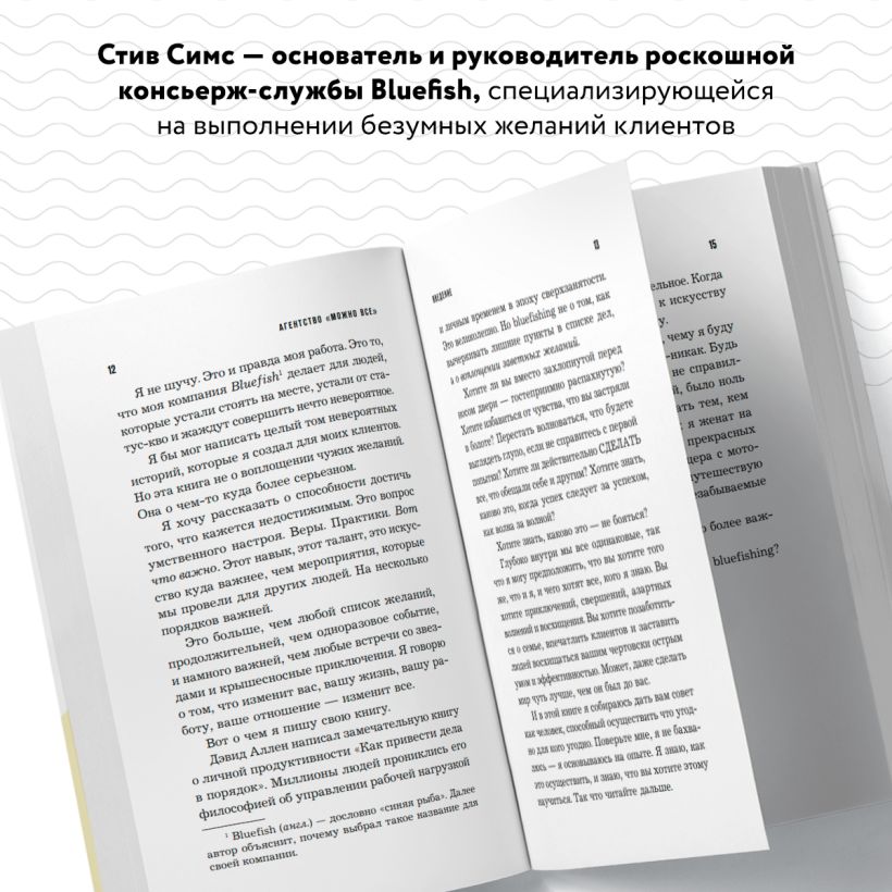 Стив Симс — основатель и руководитель роскошной консьерж-службы Bluefish, специализирующейся на выполнении безумных желаний клиентов. У Bluefish есть офисы по всему миру, компания была отмечена в Forbes, The New York Times, Entrepreneur, Variety, Worth.