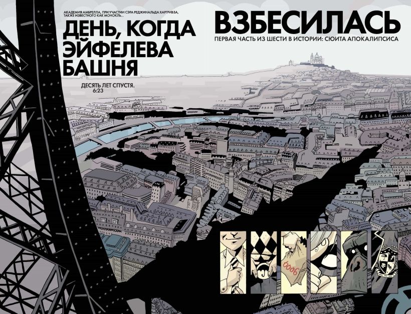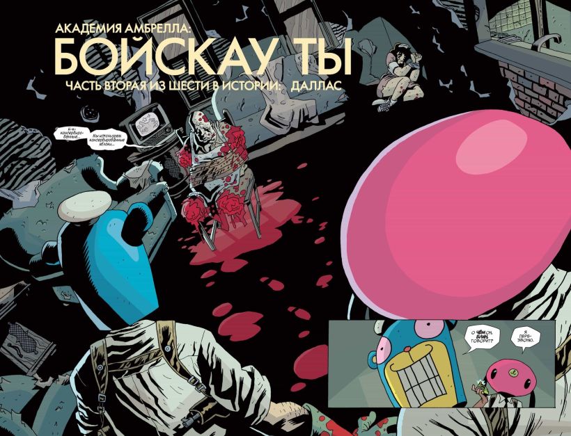 В данное издание вошли две книги: "Академия Амбрелла: Сюита Апокалипсиса" и "Академия Амбрелла: Даллас". Вторая книга намного круче первой, но без первой вы ни за что не поймёте, почему вторая такая классная. А впрочем… они обе потрясающие, здесь есть всё: зомби-робот Гюстав Эйфель, гигантская ожившая статуя Авраама Линкольна, убийственная музыка, самые опасные убийцы за все времена, которые носят мультяшные маски и обожают печенье от девочек-скаутов. И ещё, конечно же, будет уничтожен мир.
