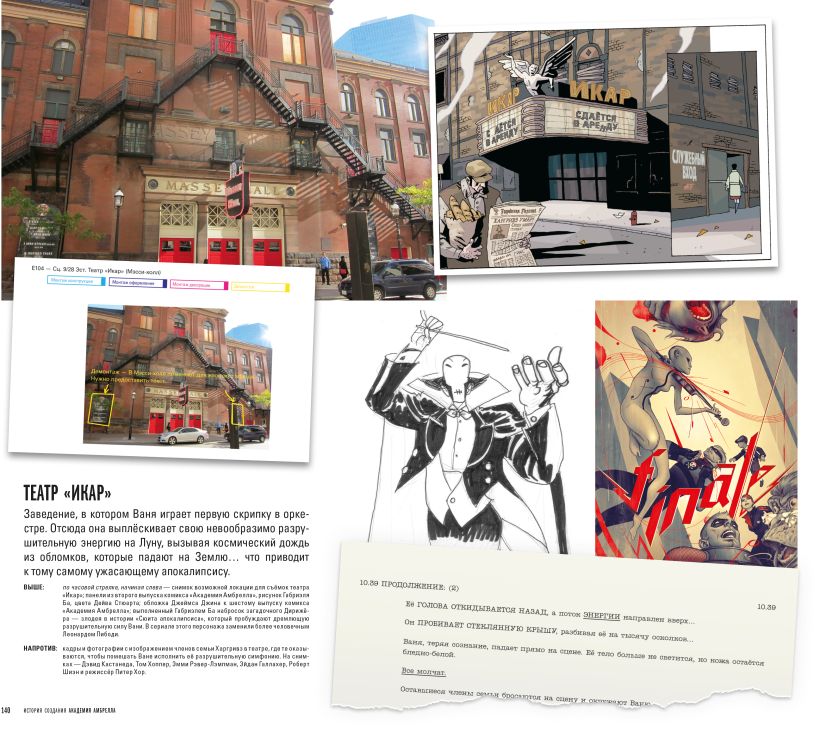 Погрузитесь в разработку и производство первого сезона с помощью сотен эксклюзивных снимков со съёмочных площадки и комментариев творческой команды, сравните сцены из комикса Джерарда Уэя и Габриэля Ба с их экранным воплощением. Эта книга станет отличным подарком как давним фанатам комикса, так и тем, кто познакомился с невероятной семьёй супергероев только в экранизации Netflix.