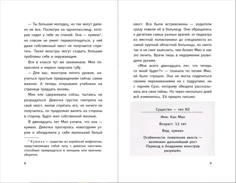 Жизнь двенадцатилетней Мио изменилась, когда однажды утром девочка проснулась с белым пушистым хвостом! Теперь Мио предстоит отправиться в академию для кумихо и других необычайных существ. Она должна найти союзников среди одноклассников, чтобы разгадать тайны академии. И, главное — познакомиться со своей новой силой.