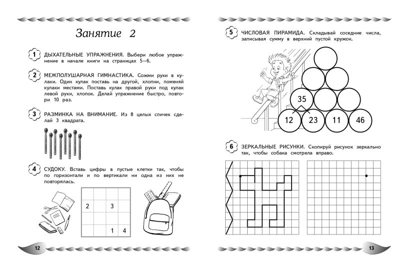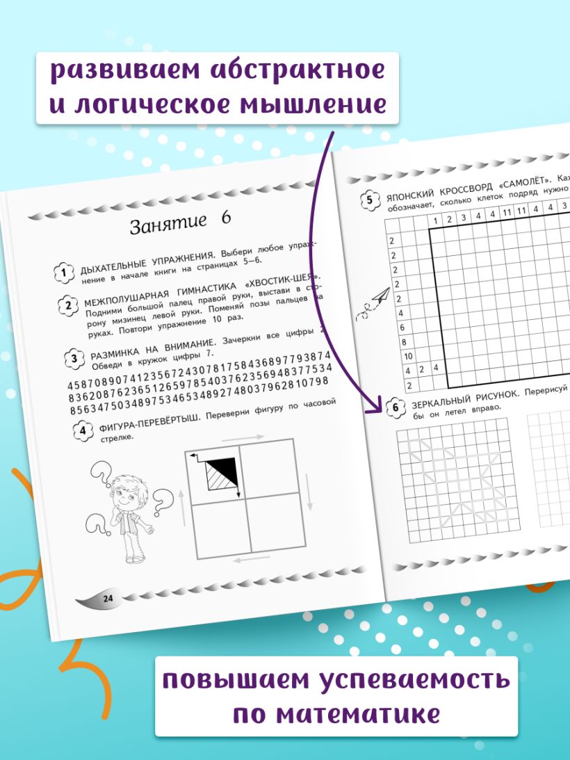 Цель пособия по активизации математических способностей — закрепить у школьников навыки решения примеров на сложение и вычитание, умножение и деление и логических задач. Занятия имеют следующую структуру: дыхательные упражнения, упражнения на развитие межполушарного взаимодействия, игры на развитие внимания, разнообразные задания по математике: головоломки, ребусы, кроссворды и многое другое. Такая структура не случайна. Каждый этап необходим для продуктивного решения математических задач. Нестандартные игровые задания по активизации математических способностей и навыков помогут ребёнку справиться с возникающими в процессе обучения затруднениями, а также станут отличной профилактикой возможных проблем. Комплекс занятий рассчитан на самостоятельную работу младшего школьника, но может быть использовано педагогами дополнительного образования, учителями, родителями.
