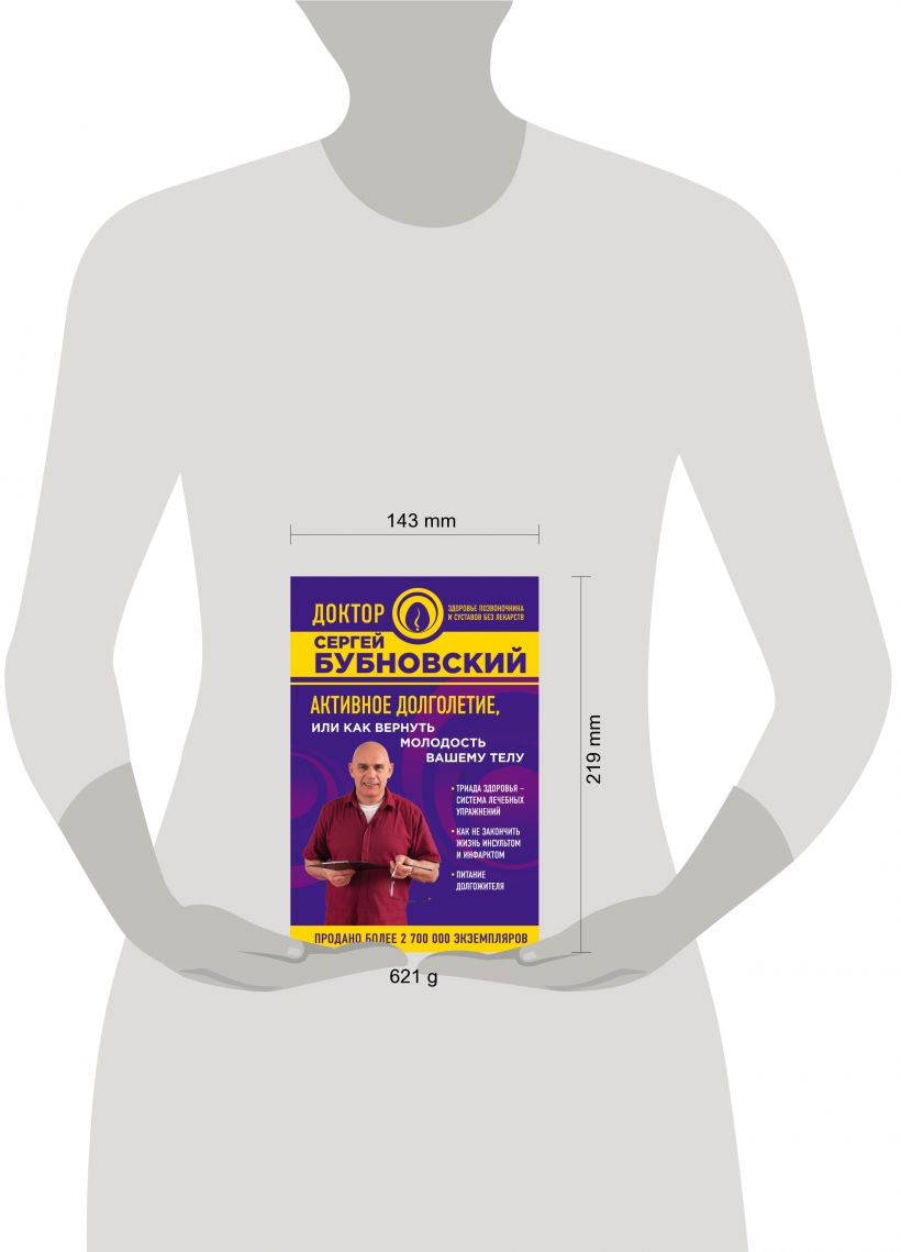 Эта книга Бубновского посвящена не столько проблемам долголетия, сколько образу жизни и методам, позволяющим восстанавливать и сохранять здоровье на максимально длительный срок. Рассматриваются способы преодоления ряда хронических заболеваний, описываются основные общие "правила" болезней, зная которые можно победить болезнь и счастливо прожить до конца отпущенного каждому из нас срока… По мнению автора, долголетие может быть активным, когда человек, сумев сохранить здоровье, занимается любимым делом, не отвлекаясь на больницы и лекарства; и пассивным – в болезнях, слабоумии, "на шее" у близких. Эта книга для тех, кто решил пойти по первому пути – пути активного долголетия. В ней есть все необходимые для этого "рецепты", но придется потрудиться, так как здоровье – это прежде всего борьба с ленью.
