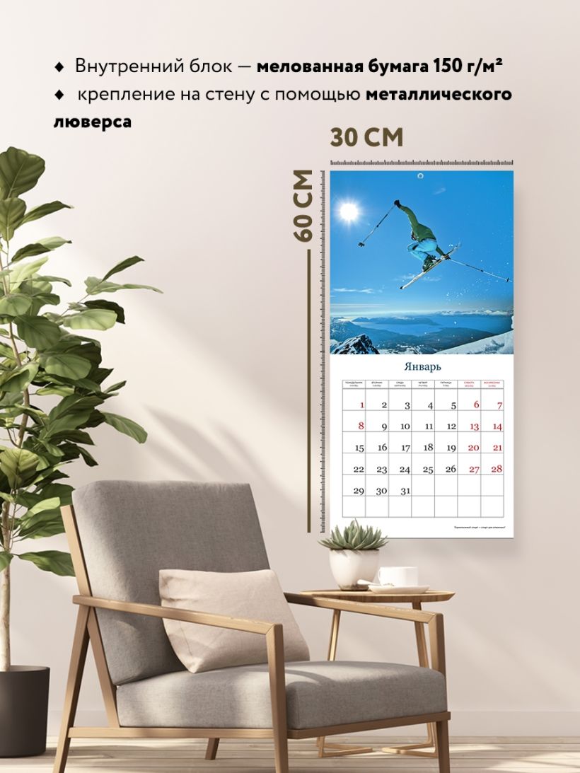 Благодаря большому формату и высокому качеству изображений этот календарь может стать отличным дополнением интерьера. В нем также отмечены выходные дни, а просторная сетка позволяет удобно планировать время и записывать важные события.