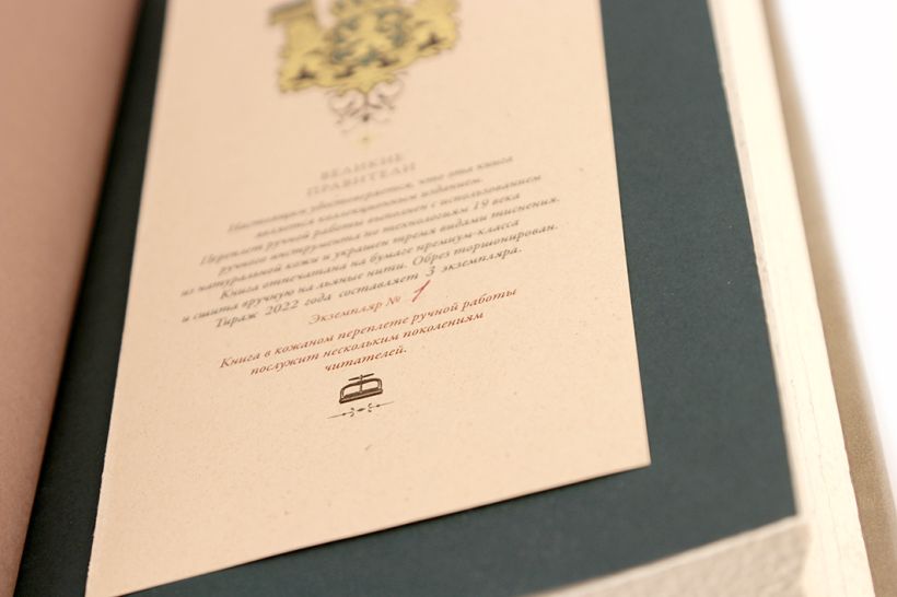 Коллекционное иллюстрированное издание в изящном составном кожаном переплёте ручной работы с торшонированным обрезом. Тираж 2022 года - 2 нумерованных экземпляра. Книги отпечатаны на бумаге премиум-класса и сшиты вручную на льняные нити. Переплеты созданы по традиционной для 19 века технологии из гладкой натуральной кожи двух цветов и украшены тремя видами тончайшего тиснения – золотым, рельефным и красочным. Украшает книгу изысканный тиснёный орнамент, обрамляющий символ серии – корона на пурпурном поле щита, поддерживаемого двумя львами, символами власти, великолепного качества рельефное тиснение дает особые тактильные ощущения. Форзацы книги сделаны из дизайнерской хлопковой бумаги. Каптал и ляссе из золотистого шёлка. В книгу помещен сертификат, отпечатанный на эко-бумаге, пронумерованный вручную. Великолепный подарок ценителям хорошей книги и мировой истории. Все книги серии оформлены в едином стиле и будут великолепно смотреться на книжной полке.