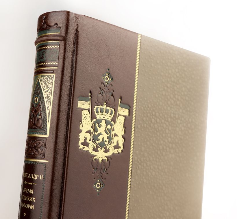 Александр II. Время великих реформ. Коллекционное иллюстрированное издание премиум-класса в кожаном переплете ручной работы в стиле 19 века с бинтами, красочным тиснением и торшонированными обрезами