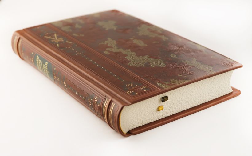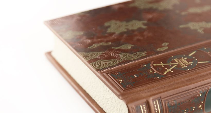 Коллекционное иллюстрированное издание в изящных кожаных переплётах ручной работы с торшонированными обрезами и с нумерованными вручную сертификатами. Книга отпечатаны на плотной бумаге цвета топленого молока и сшита вручную на льняные нити. Множество графических и цветных иллюстраций. Переплет создан по традиционной для 19 века технологии из гладкой натуральной кожи благородного цвета нефрита цвета и украшен четырьмя видами тончайшего тиснения. Украшает книги изысканный тиснёный орнамент, воспроизводящий одновременно и рисунок ландшафтных карт и защитный паттерн, а великолепного качества рельефное тиснение дает особые тактильные ощущения.