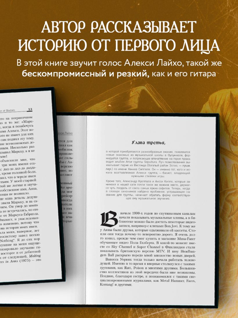 Автор этой книги Петри Силас рассказывает историю от первого лица. Голос Алекси Лайхо, такой же бескомпромиссный и резкий, как и его гитара, звучит в каждой главе, рассказывая нам правдивую историю о том, как мальчик из Манккаа стал рок-иконой и как, пройдя все испытания, выпавшие на жизнь музыканта, изматывающие репетиции, провалы, успех, безумные вечеринки, тяжелую травму, Алекси остался человеком, преданно любящим свое дело и мечтавшим о спокойной и счастливой жизни в кругу семью на берегу Австралии.