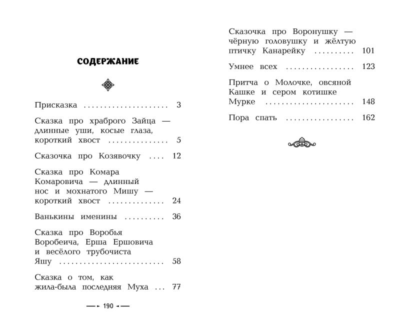 В сборник вошло 11 произведений: «Сказочка про Козявочку», «Ванькины именины», «Сказочка про Воронушку — чёрную головушку и жёлтую птичку Канарейку» и другие.