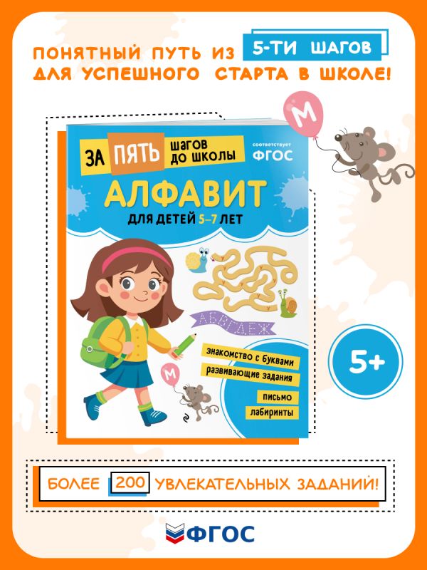 Цель книги, соответствующей ФГОС, — помочь малышу познакомиться с буквами, научиться их узнавать, называть, писать. На каждой странице его ждут увлекательные упражнения, благодаря которым усвоение нового материала превратится в интересную игру. Выполняя их, ребенок разовьет логику, мелкую моторику, память, внимание, речь, расширит словарный запас. Время, проведённое за занятиями, будет полезным и приятным!