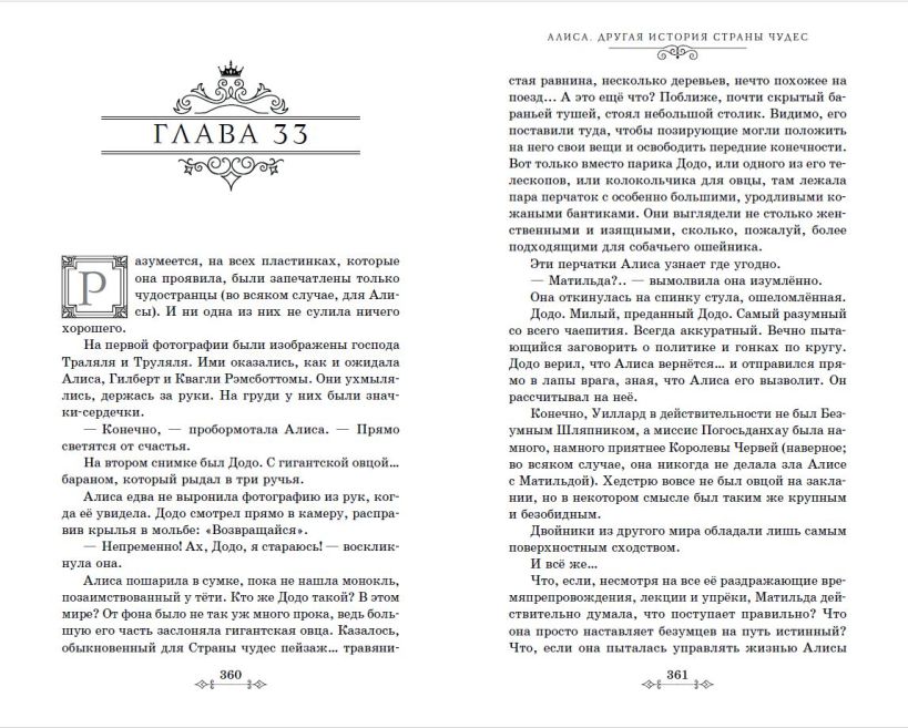 Книга оформлена потрясающей новой иллюстрацией, с которой на вас смотрят совсем другие Алисы, — да-да, в этой книге их две.