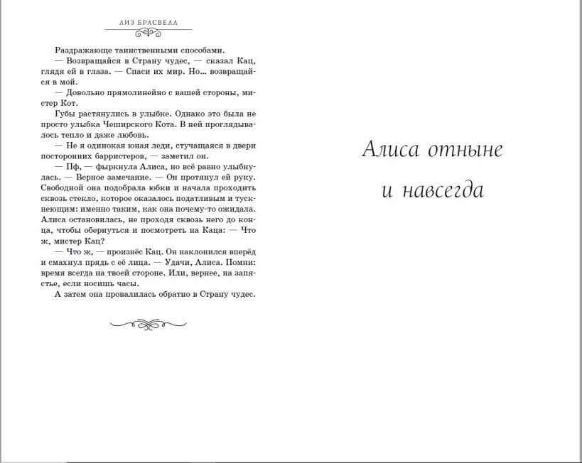 Книга поддерживает актуальный тренд — новый взгляд на известные истории, поиск скрытых смыслов. Но при этом книга сохраняет и приумножает неповторимую атмосферу великого произведения Льюиса Кэрролла — вы почувствуете это с первых же строк.