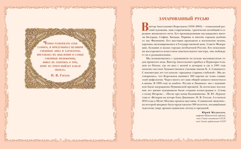 В коллекцию с иллюстрациями Виктора Королькова вошли книги: Н. Гоголь «Вечера на хуторе близ Диканьки», А. Пушкин «Руслан и Людмила», Ю. Медведев «Русские легенды и предания», «Слово о полку Игореве».