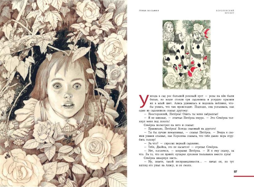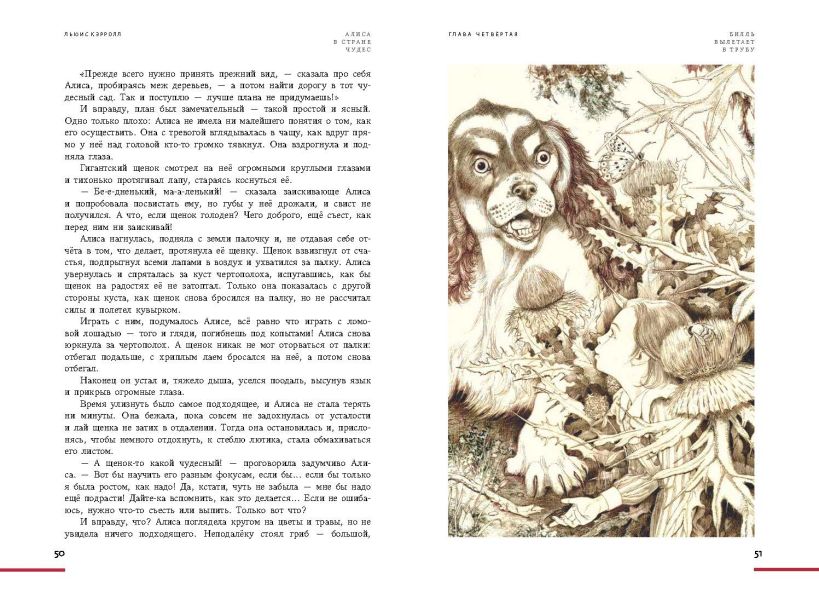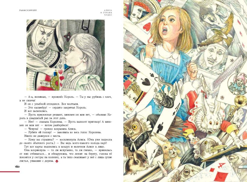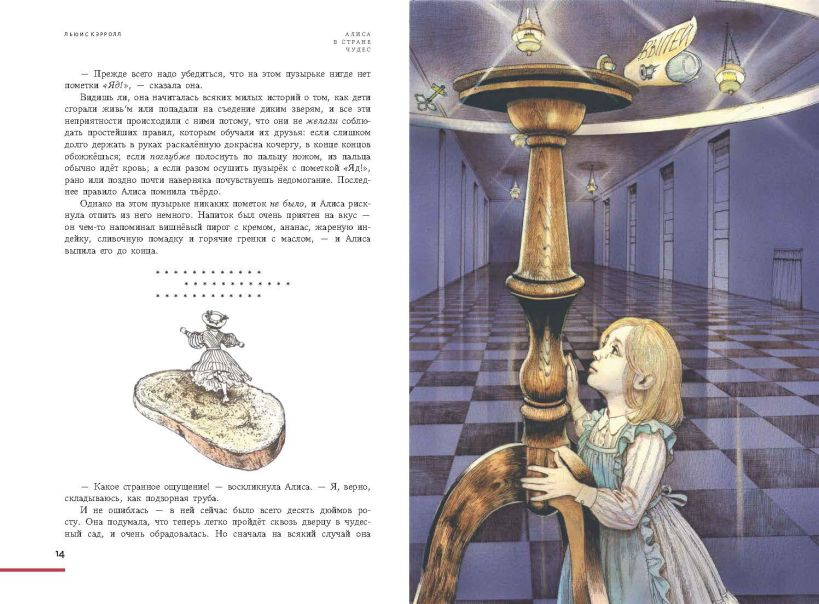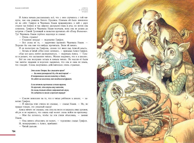 Канонический перевод Нины Демуровой, каскад лёгких и выразительных стихотворений Самуила Маршака, Ольги Седаковой, Дины Орловской, завораживающие сюжеты иллюстраций превращают книгу в изысканный арт-объект, загадочный и чарующий, как знаменитая улыбка Чеширского кота.